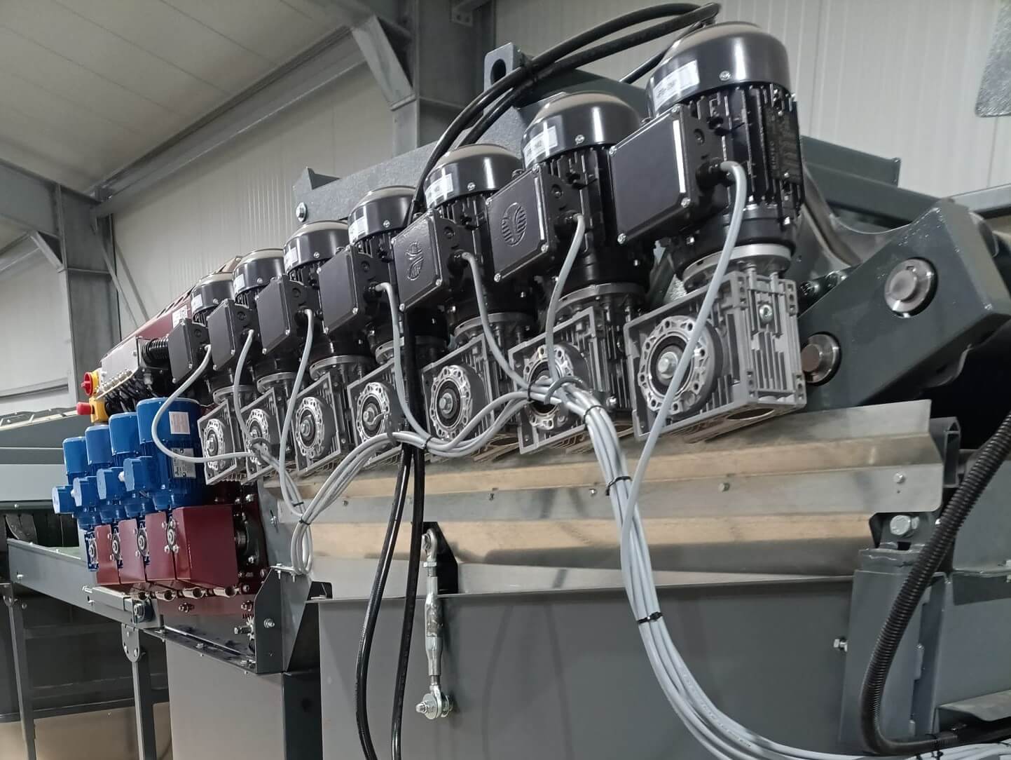 Die Geschwindigkeit des Siebbandes und der Paddelwellen kann mit frequenzgeregelten Getriebemotoren flexibel angepasst werden.