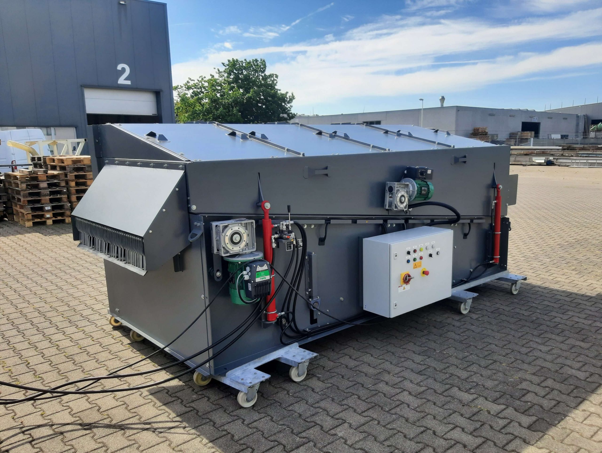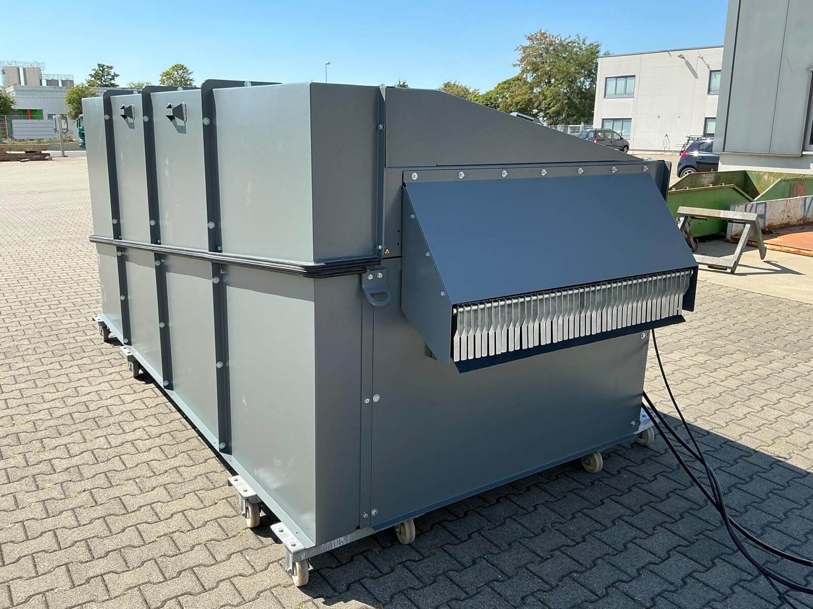 Daher ist kein Bypass-Betrieb notwendig. Der integrierte Luftkanal auf der Rückseite des Entschloters erlaubt den Betrieb in offener Aufstellung, ohne dass große Verunreinigungen im Gebäude zurückbleiben.